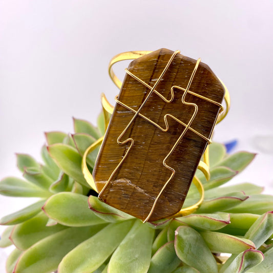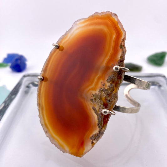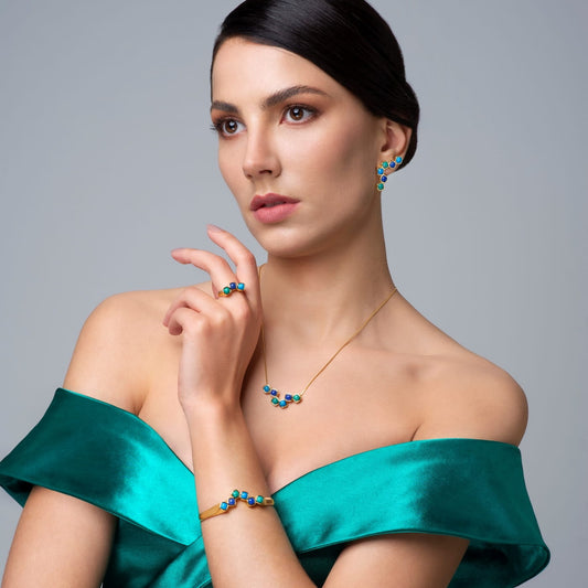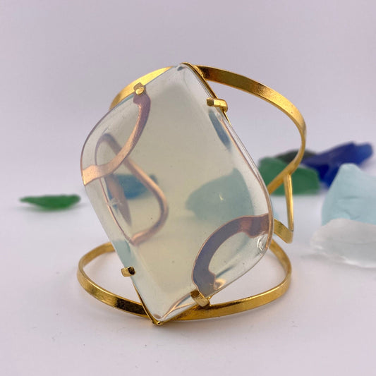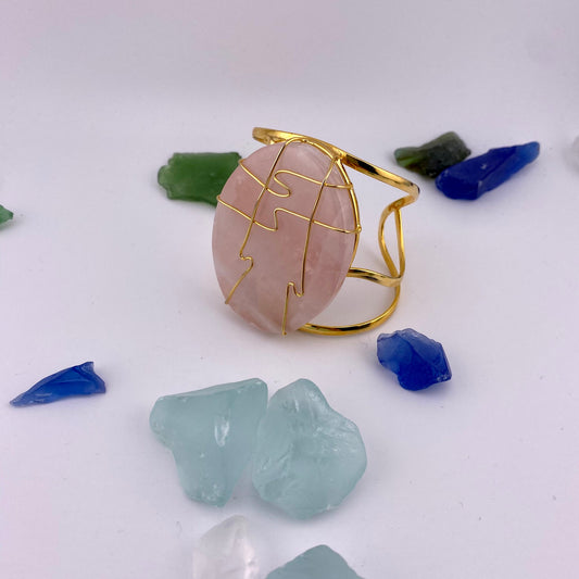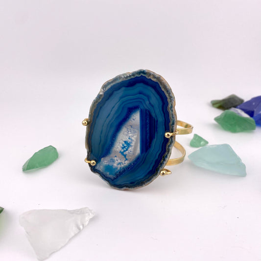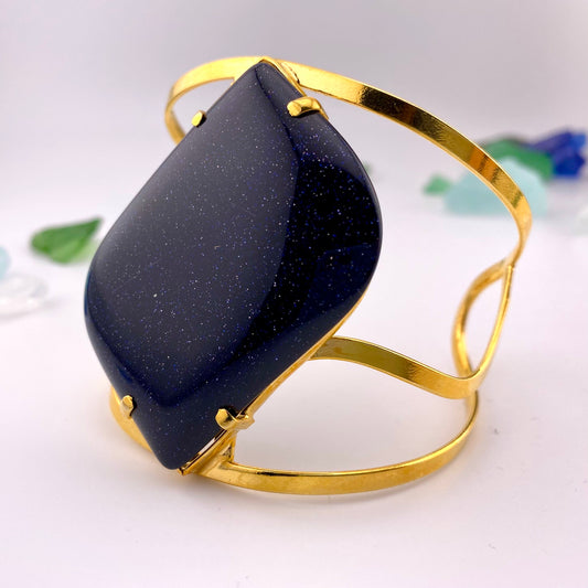Blue Quartz Rhombus Faces Cuff Bracelet