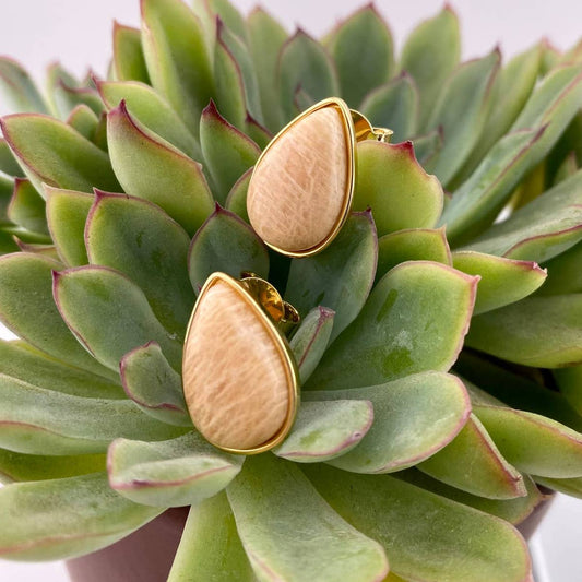 Sold outBeige Amazonite Teardrop Earring
