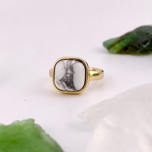White Howlite Square Ring