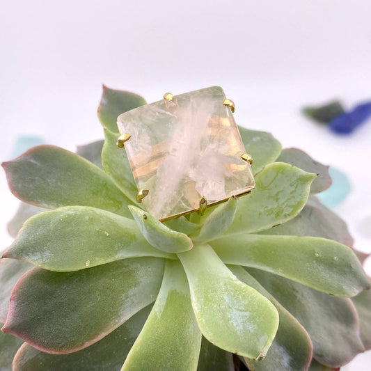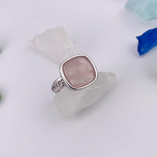 Rose Quartz Square Ring