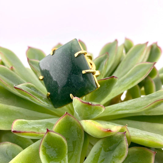 Sold outGreen Quartz Square Adjustable Ring