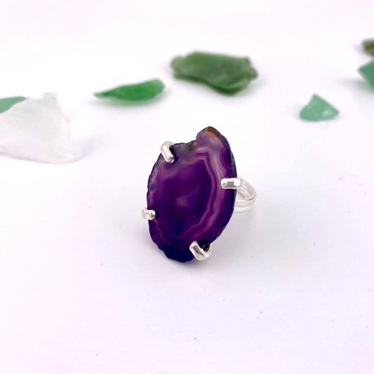Sold outPurple Agate Slice Adjustable Ring