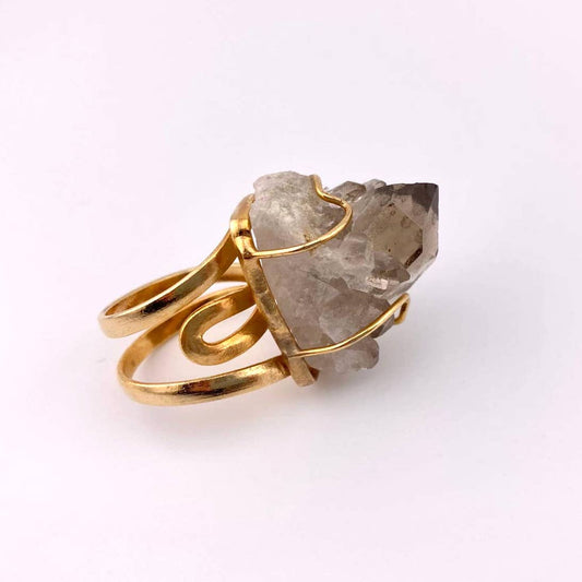 Raw Smoky Quartz Druse Adjustable Ring