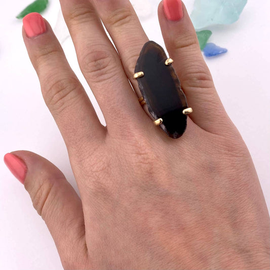 Sold outBlack Agate Slice Adjustable Ring