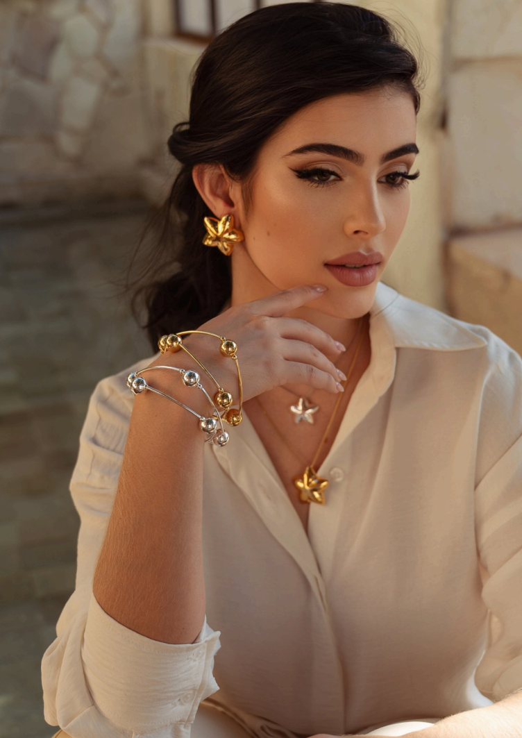 Complete your celestial look with our Puffy Star Earrings, designed to perfectly complement the Puffy Star Earrings. These enchanting earrings feature a charming 3D puffy star design, available in both luxurious 18k gold plating and sleek silver plating.