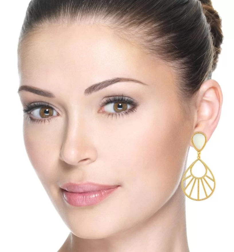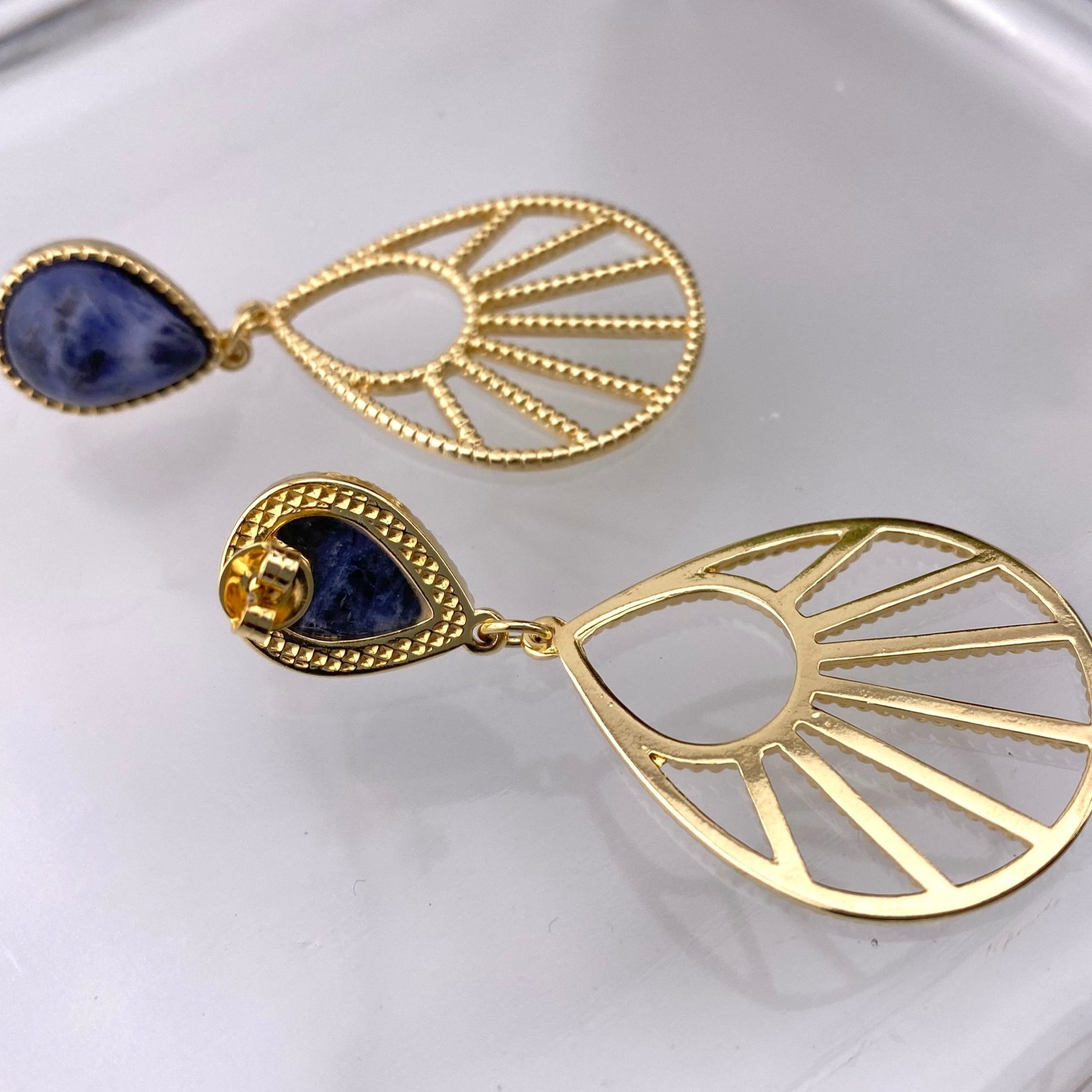 Experience the allure of enchanting jewels - a pair of earrings crafted from the finest sodalite, adorned with 18k gold plating, and bearing a shape that captures the eye's gaze in wonder. Let this treasure be your companion, enchanting all who behold it with its unique charm!